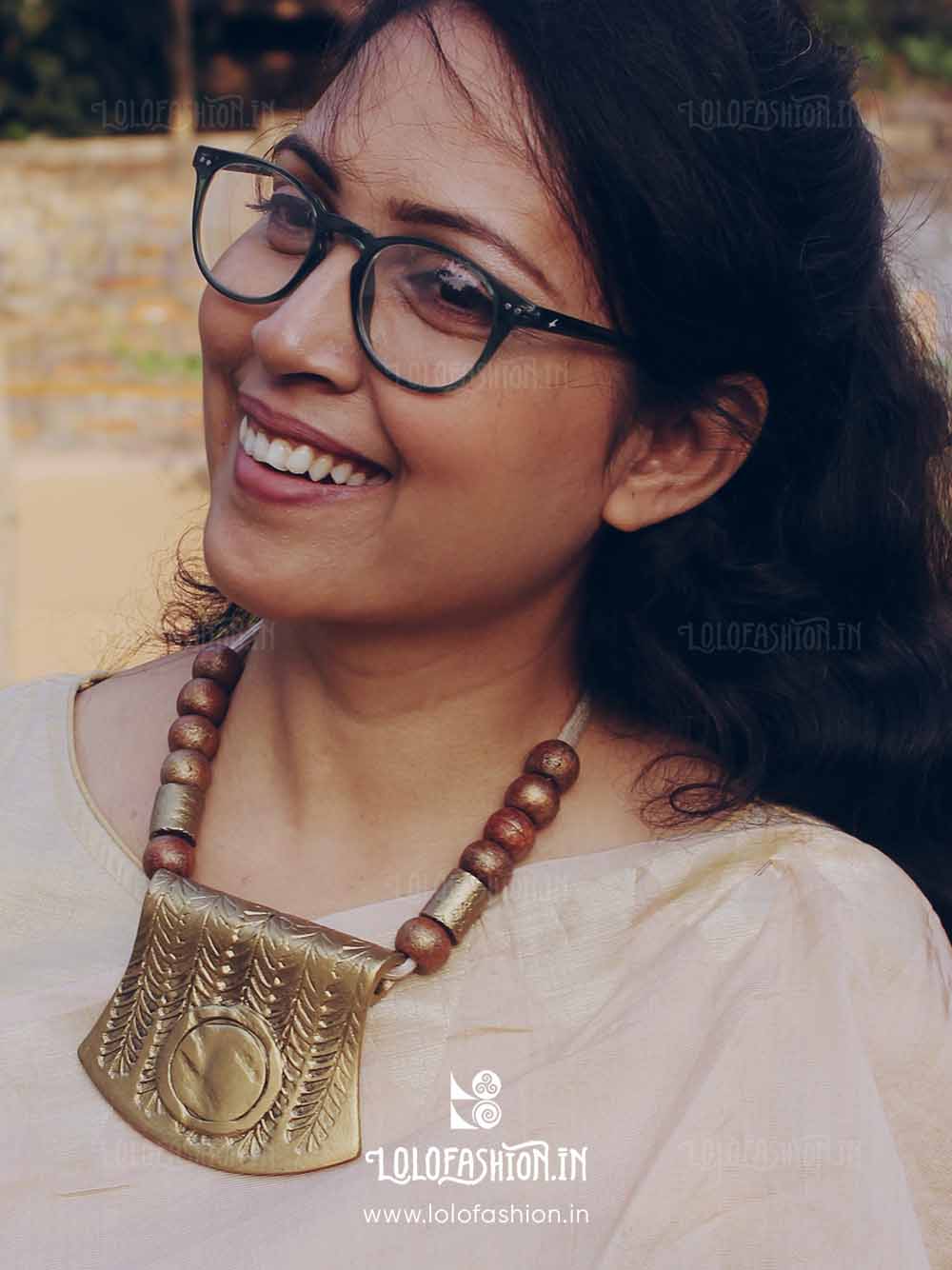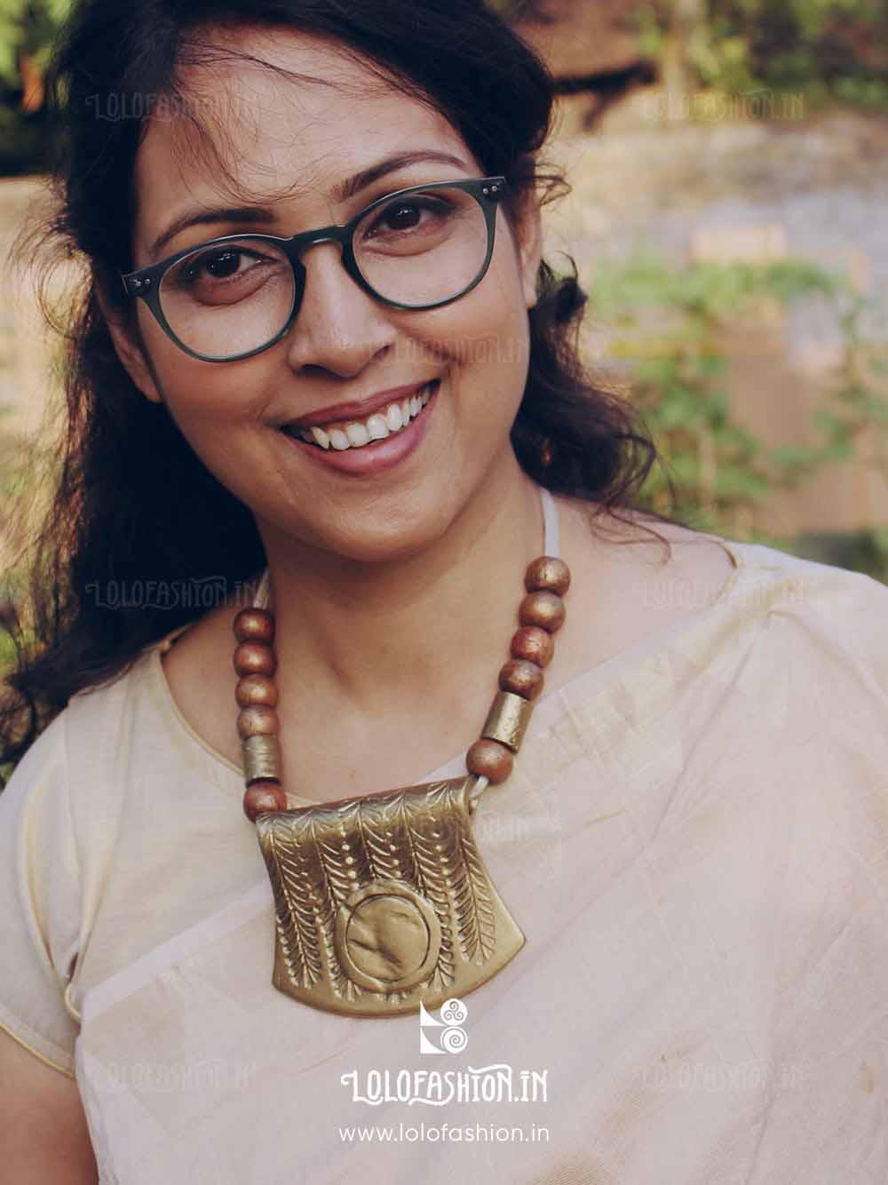 materials: synthetic clay, anchor thread tassel, wooden beads # product colour: antique gold # tassel colour: off white