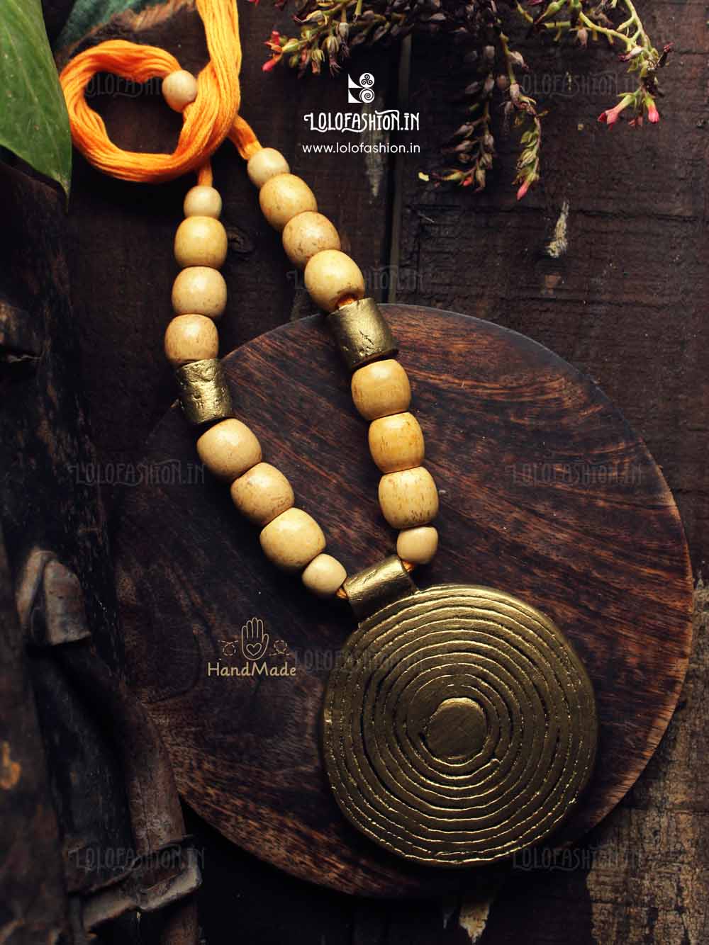 materials: synthetic clay, anchor thread tassel, wooden beads # product colour: antique gold # tassel colour: orange # product weight: approximate105 grams.
