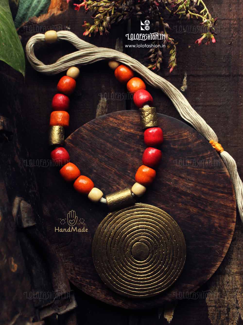 materials: synthetic clay, anchor thread tassel, wooden beads # product colour: antique gold # tassel colour: chrome yellow # product weight: approximate105 grams.