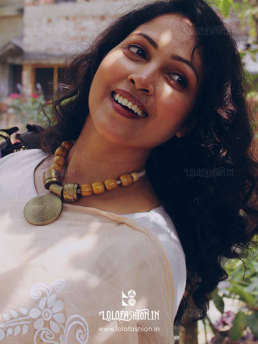materials: synthetic clay, cotton tassel, wooden beads # product colour: antique gold # tassel colour: off white # product weight: approximate 60 grams.