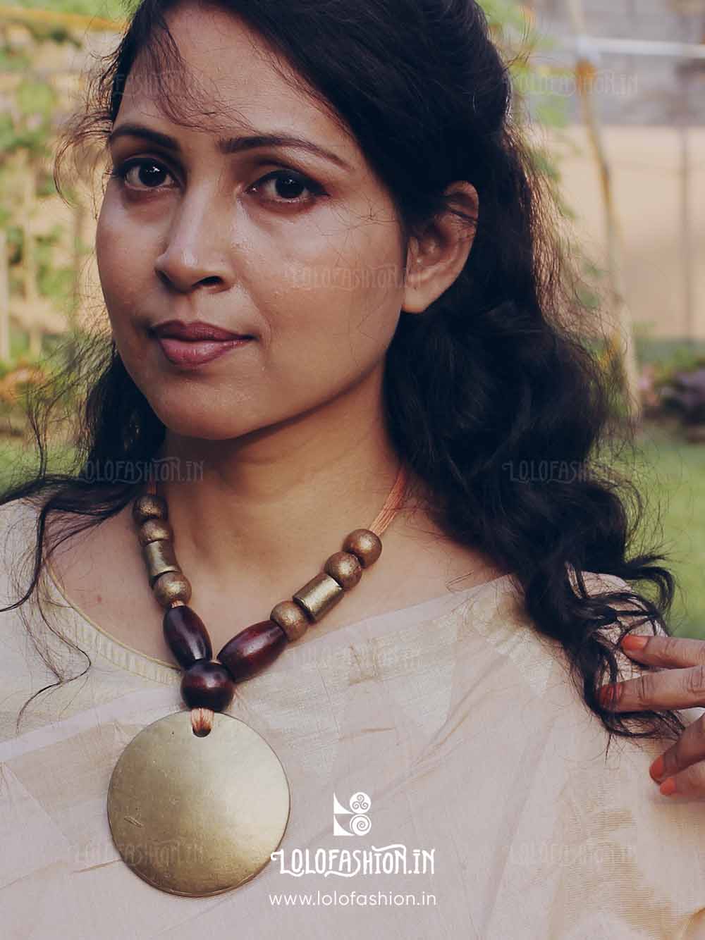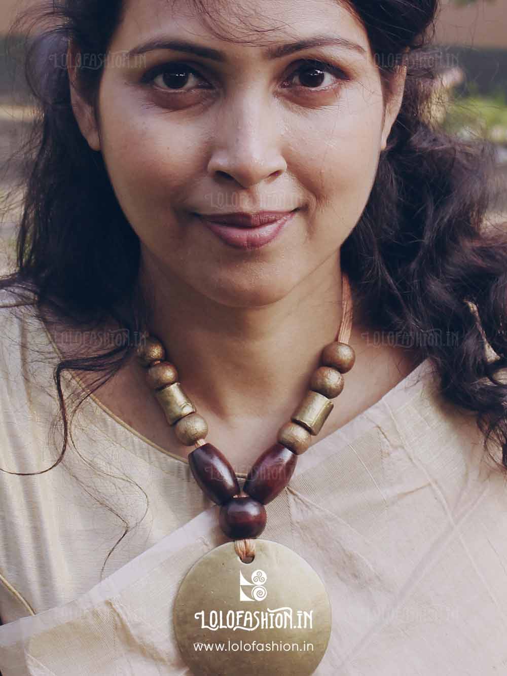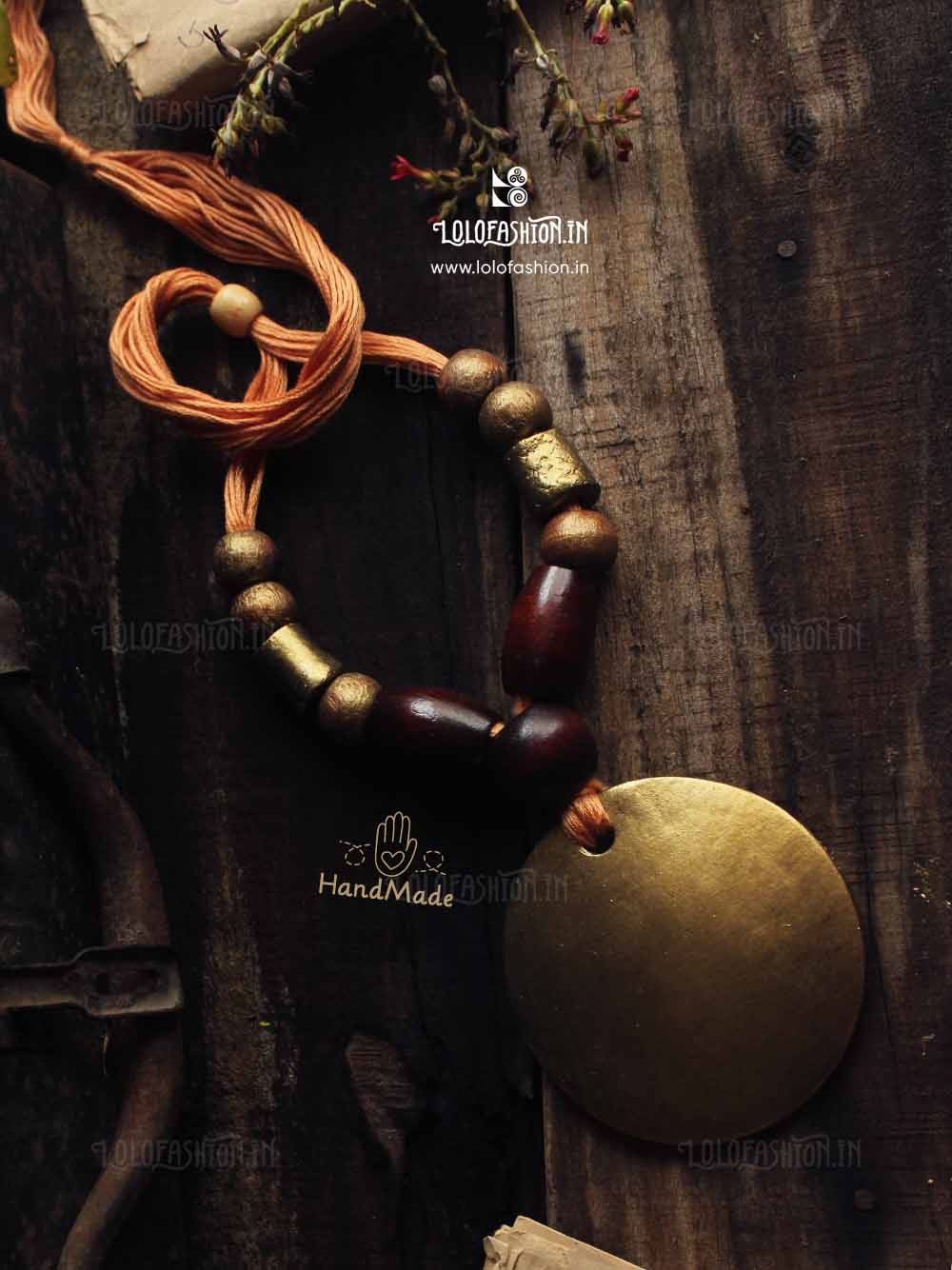 materials: synthetic clay, anchor thread tassel, wooden beads # product colour: antique gold # tassel colour: golden brown
