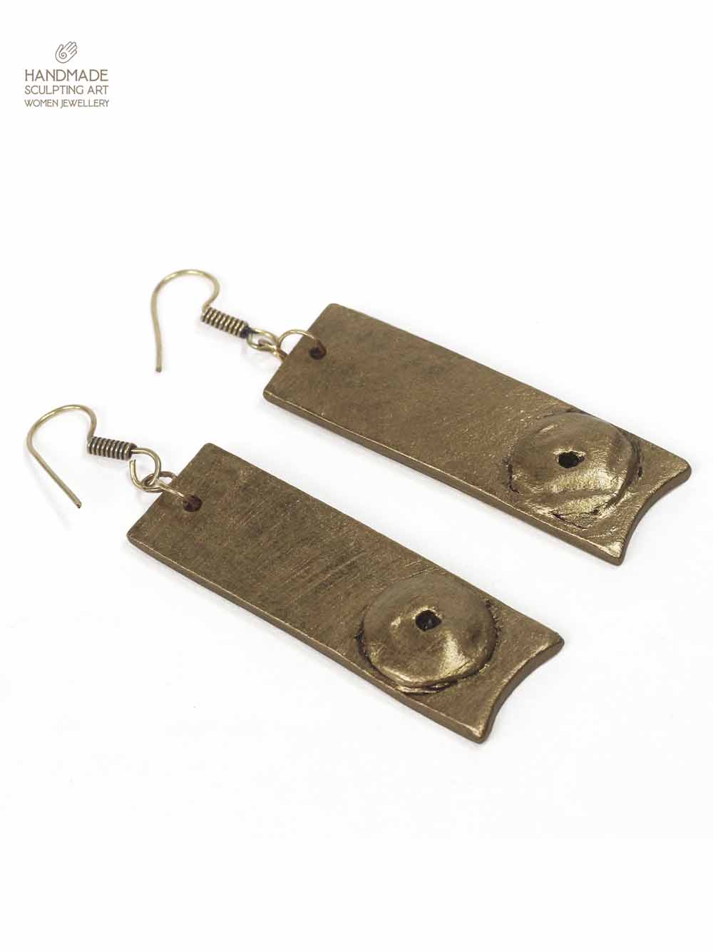 handmade sculpting art women jewellery. • materials: synthetic clay. • product colour: antique gold (acrylic) • measurements: length approximate 2.3 inches (without hooks) • product weight: approximate 16 grams.