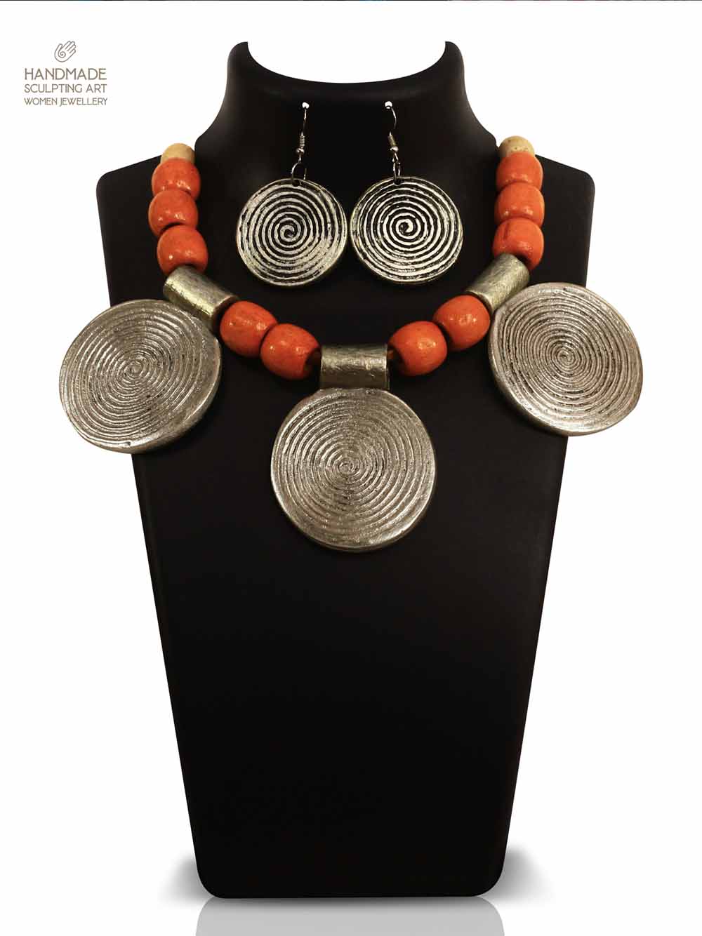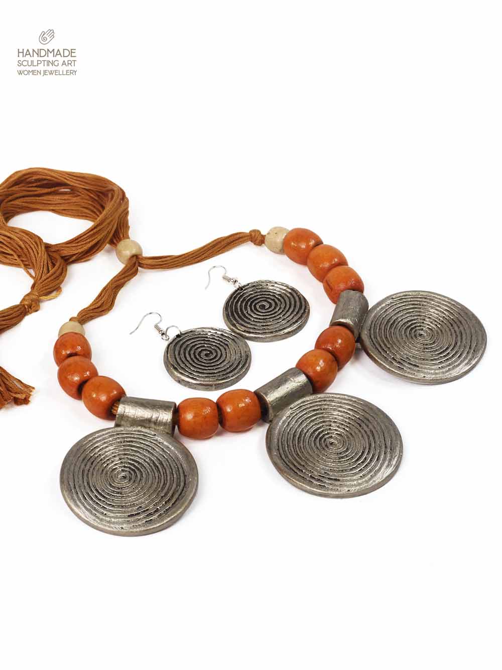 materials: synthetic clay, anchor thread tassel, wooden beads # product colour: silver # tassel colour: dark yellown # product weight: approximate 100 grams.