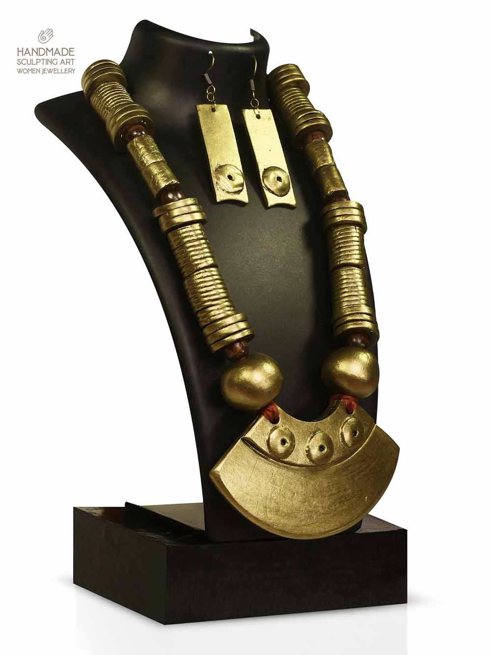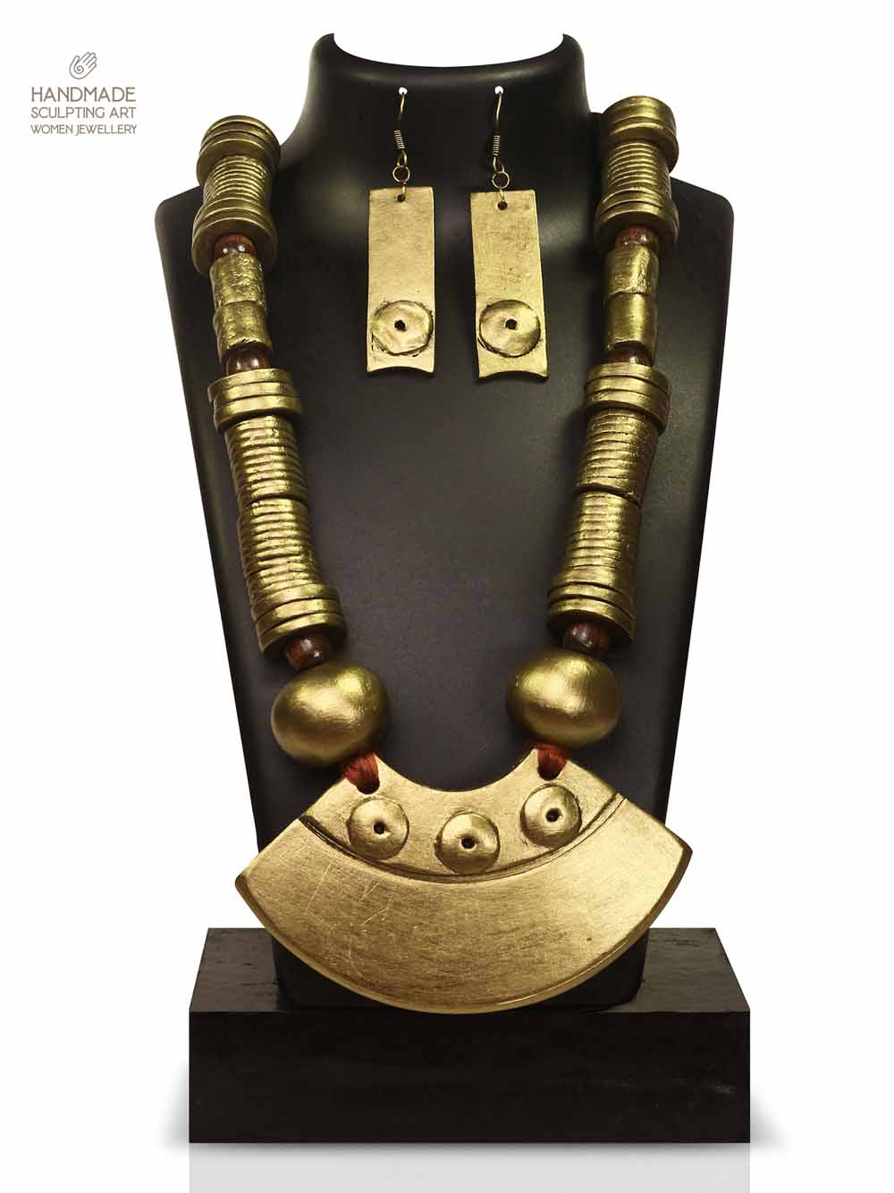 materials: synthetic clay, anchor thread tassel, wooden beads # product colour: antique gold # tassel colour: dark brown # measurements: length approximate 13 inches (without tassel) # product weight: approximate 250 grams.