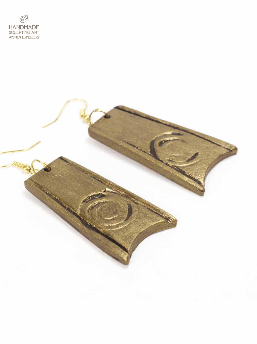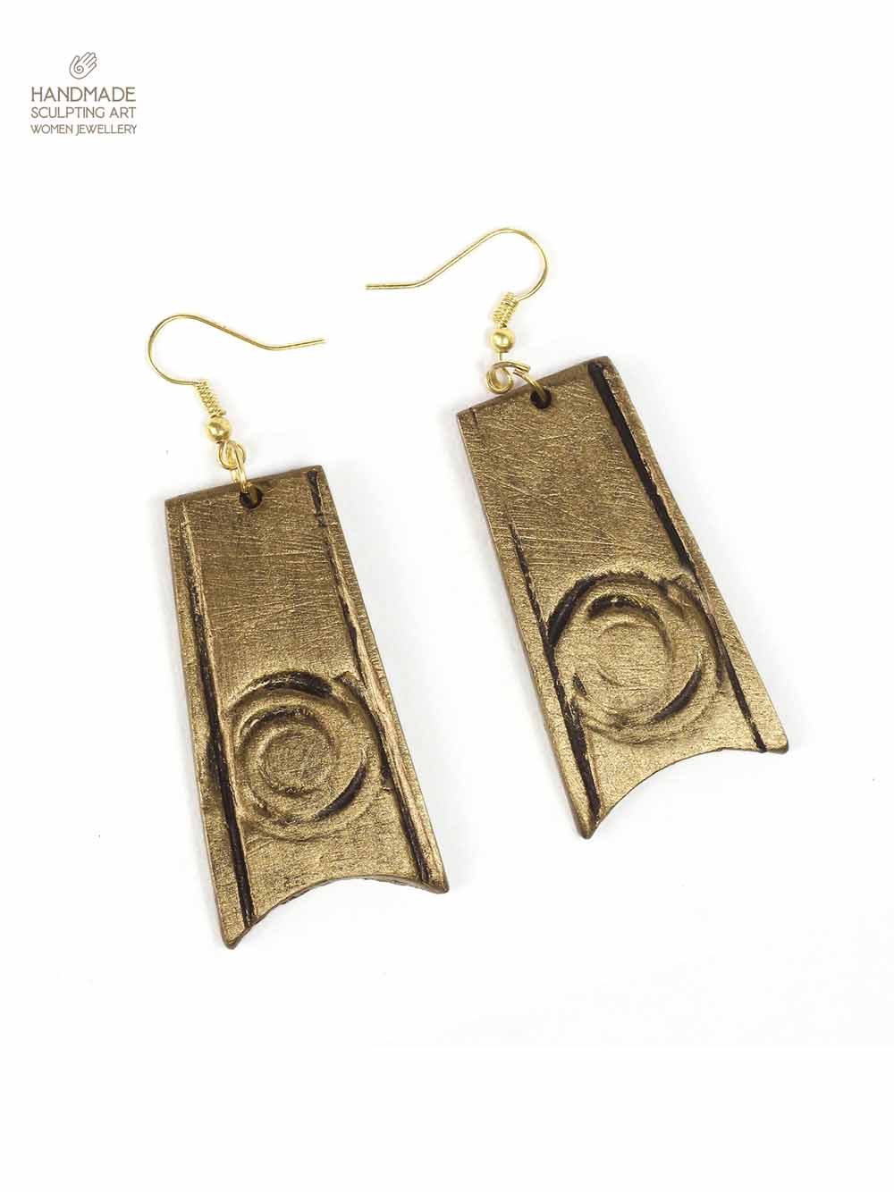 • materials: synthetic clay. • product colour: antique gold (acrylic) • measurements: length approximate 1.9 inches (without hooks) • product weight: approximate 10 grams.