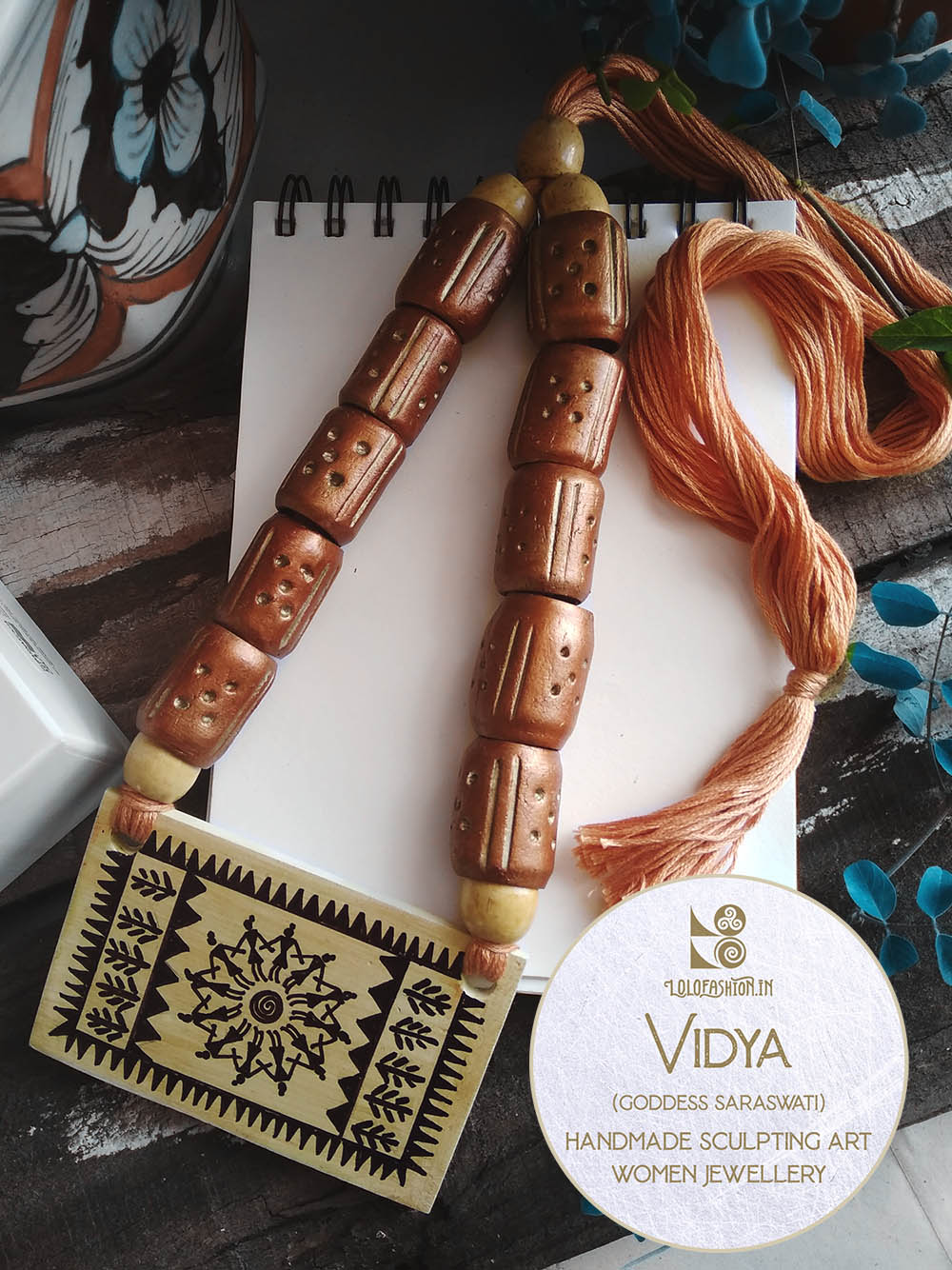 materials: synthetic clay, anchor thread tassel, wooden beads # tassel colour: creamish brown
