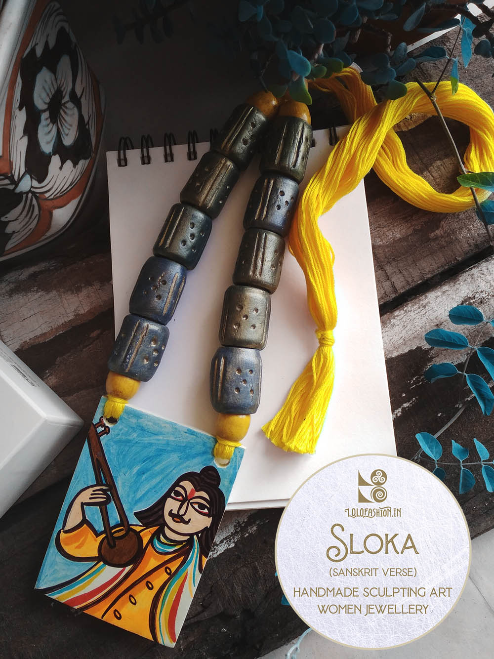 materials: synthetic clay, anchor thread tassel, wooden beads # tassel colour: bright chrome yellow