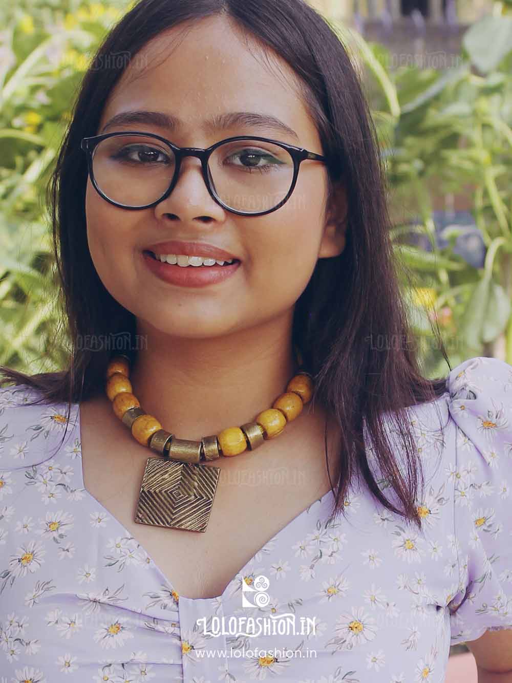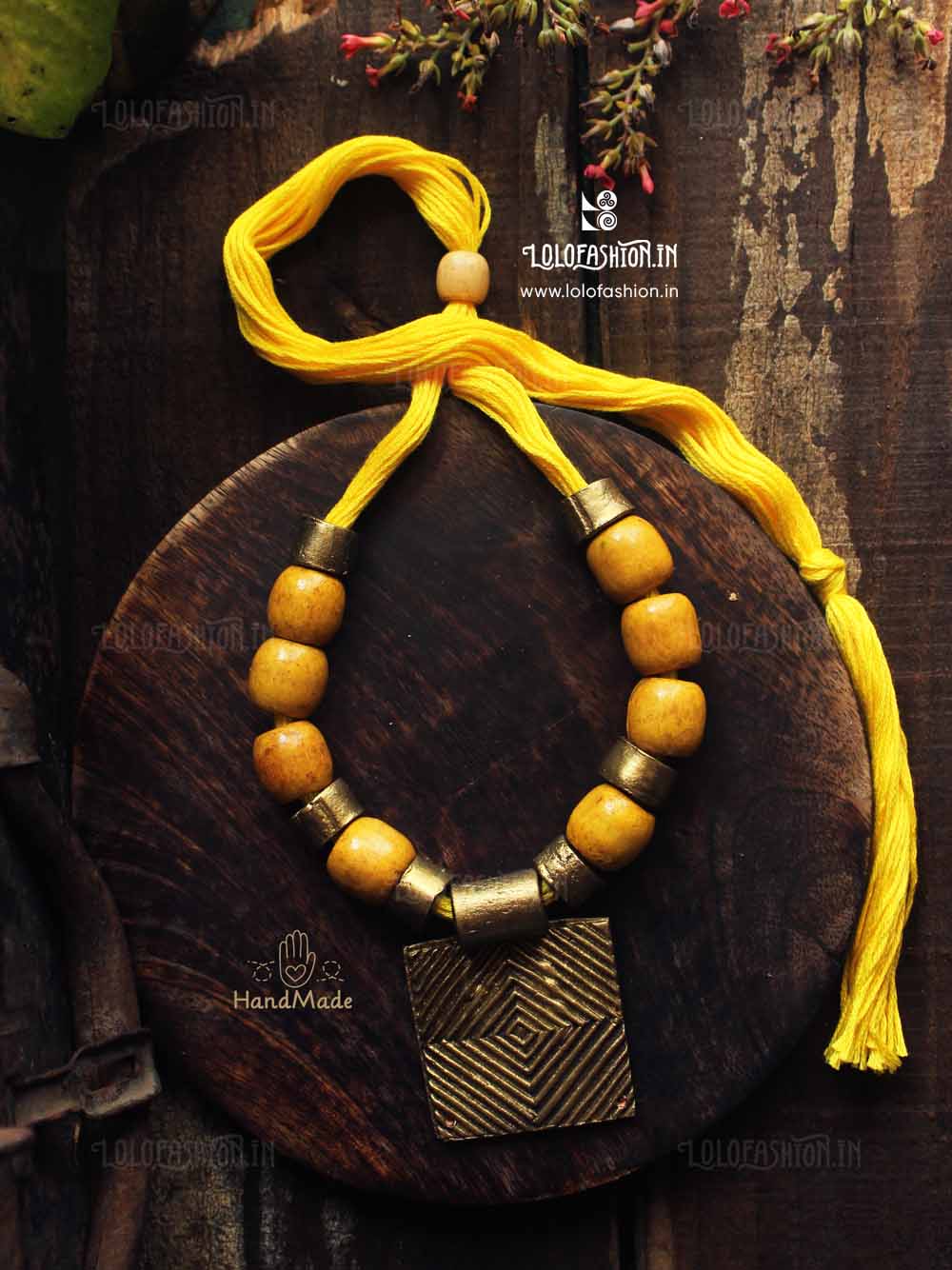 materials: synthetic clay, anchor thread tassel, wooden beads # product colour: antique gold # tassel colour: chrome yellow # product weight: approximate 55 grams.