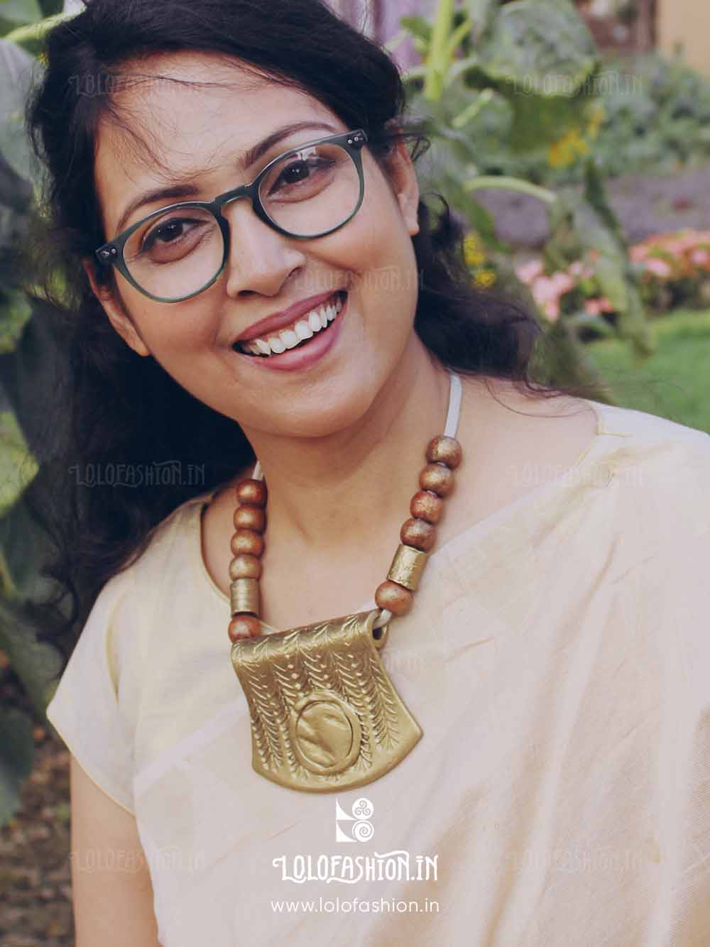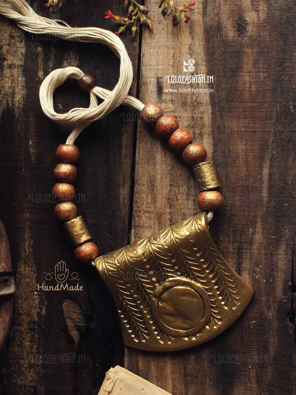 materials: synthetic clay, anchor thread tassel, wooden beads # product colour: antique gold # tassel colour: off white