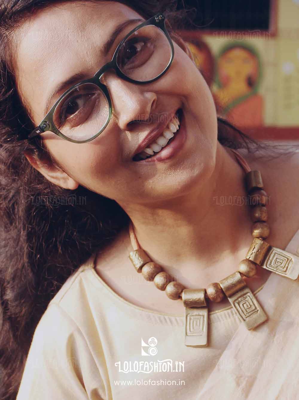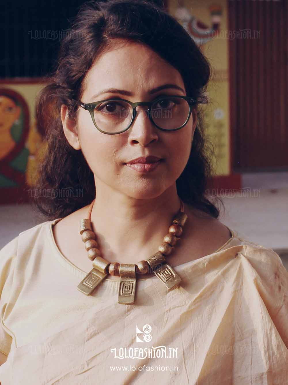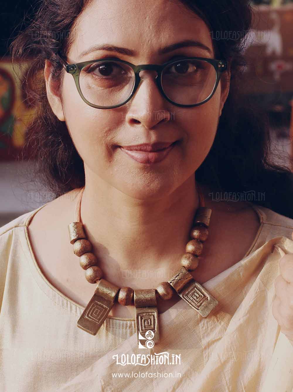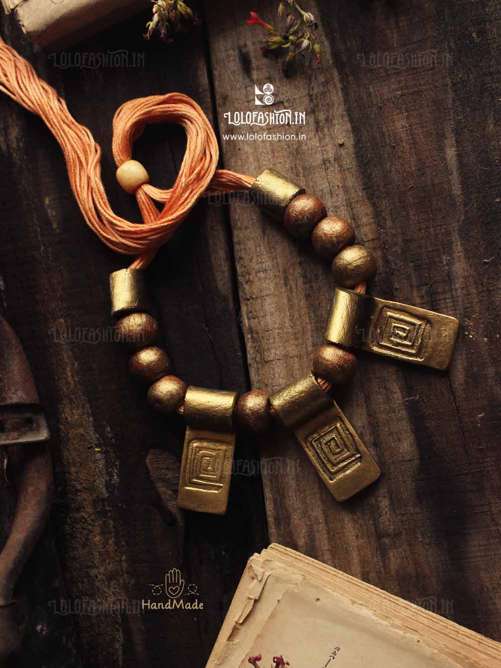 materials: synthetic clay, anchor thread tassel, wooden beads # product colour: antique gold # tassel colour: golden brown