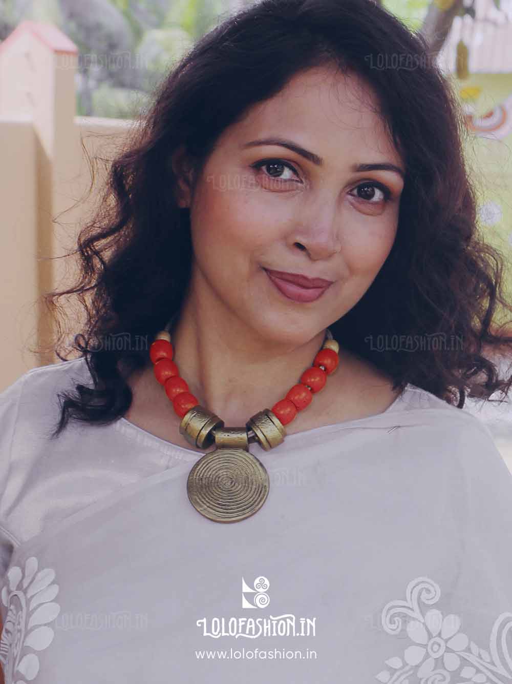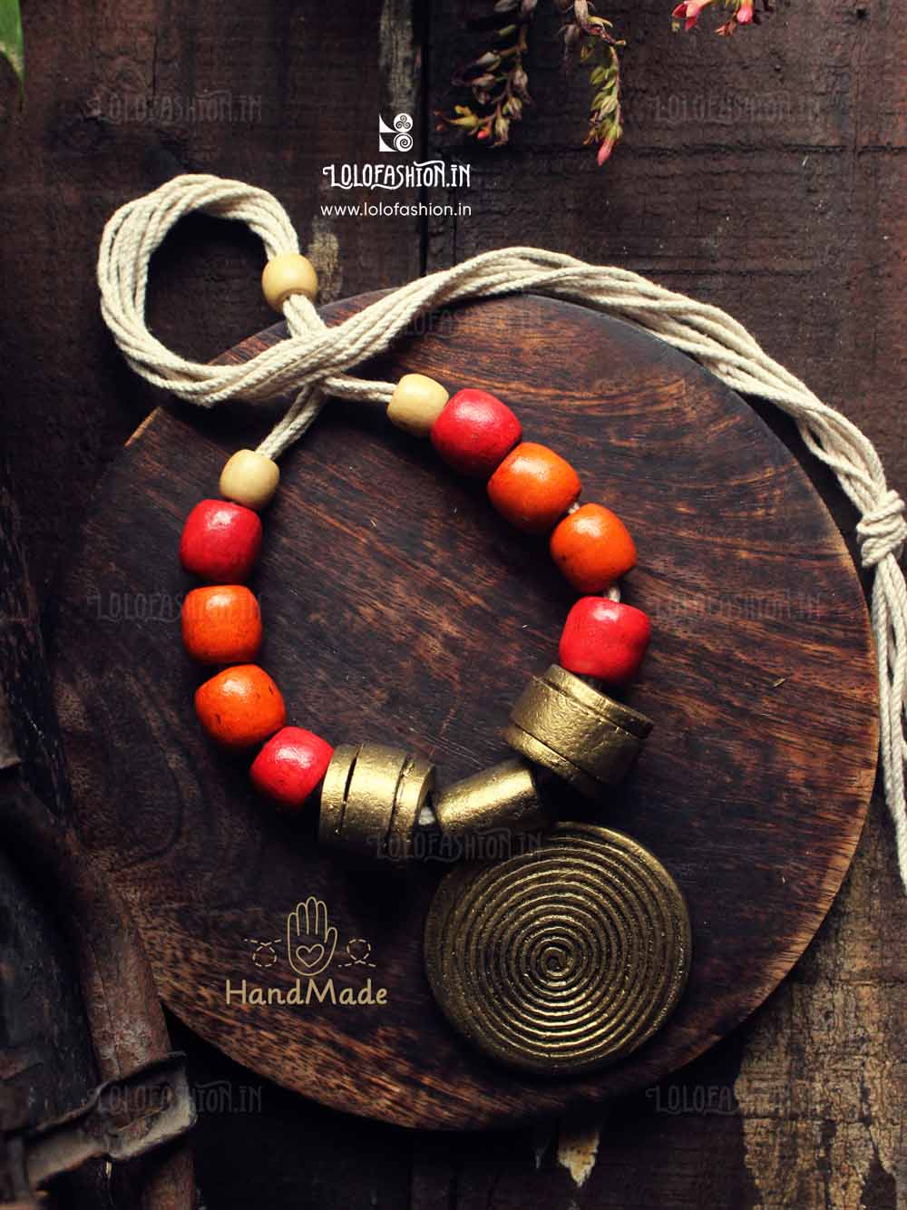 materials: synthetic clay, cotton tassel, wooden beads # product colour: antique gold # tassel colour: off white # product weight: approximate 60 grams.