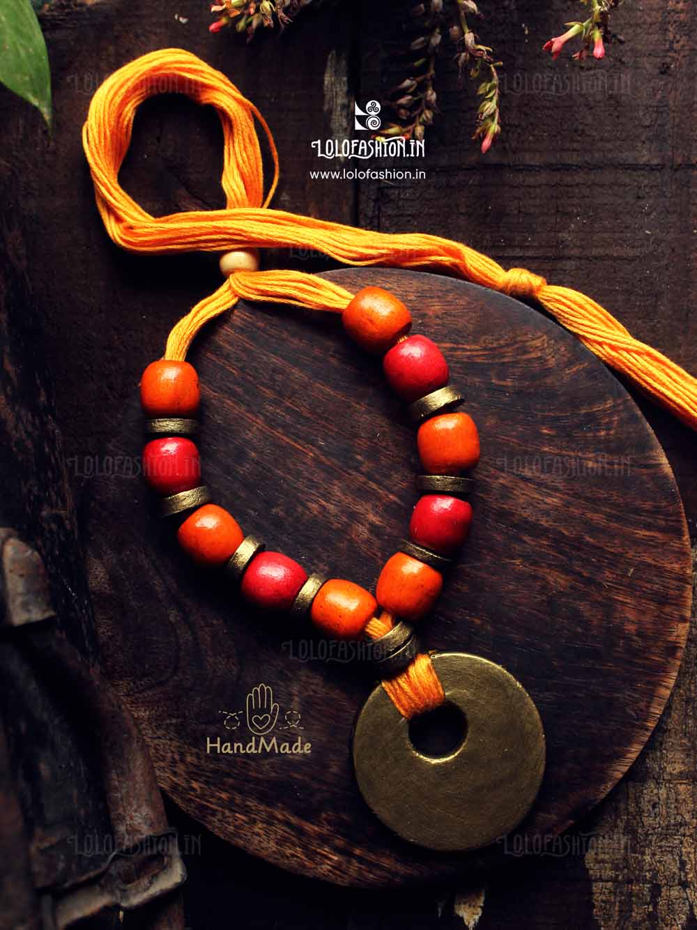 materials: synthetic clay, anchor thread tassel, wooden beads # product colour: antique gold # tassel colour: orange # product weight: approximate 50 grams.