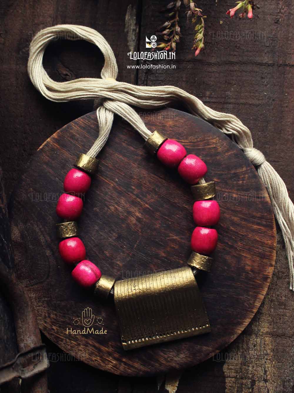 materials: synthetic clay, anchor thread tassel, wooden beads # product colour: antique gold # tassel colour: off white # product weight: approximate 60 grams.
