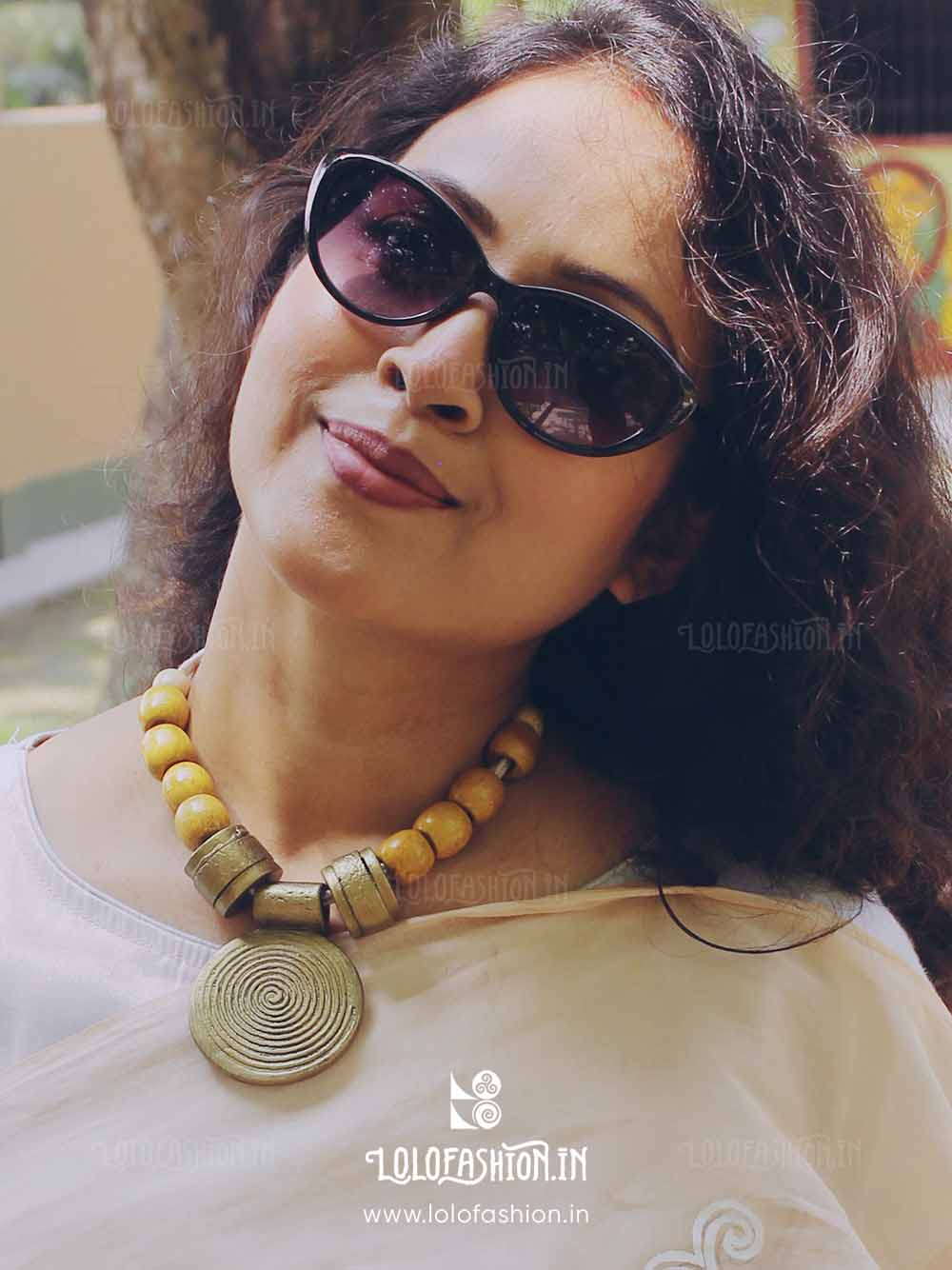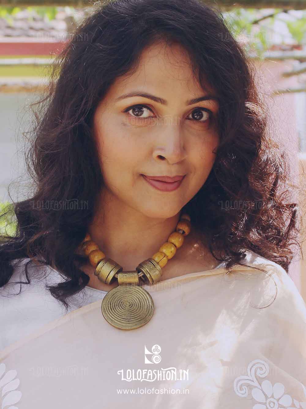 materials: synthetic clay, cotton tassel, wooden beads # product colour: antique gold # tassel colour: off white # product weight: approximate 60 grams.