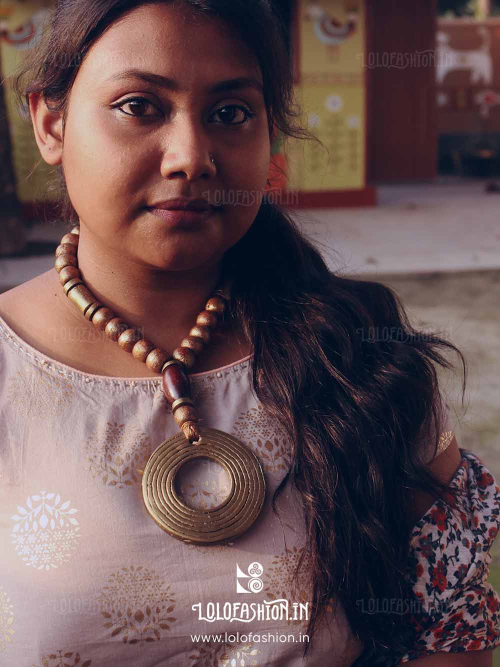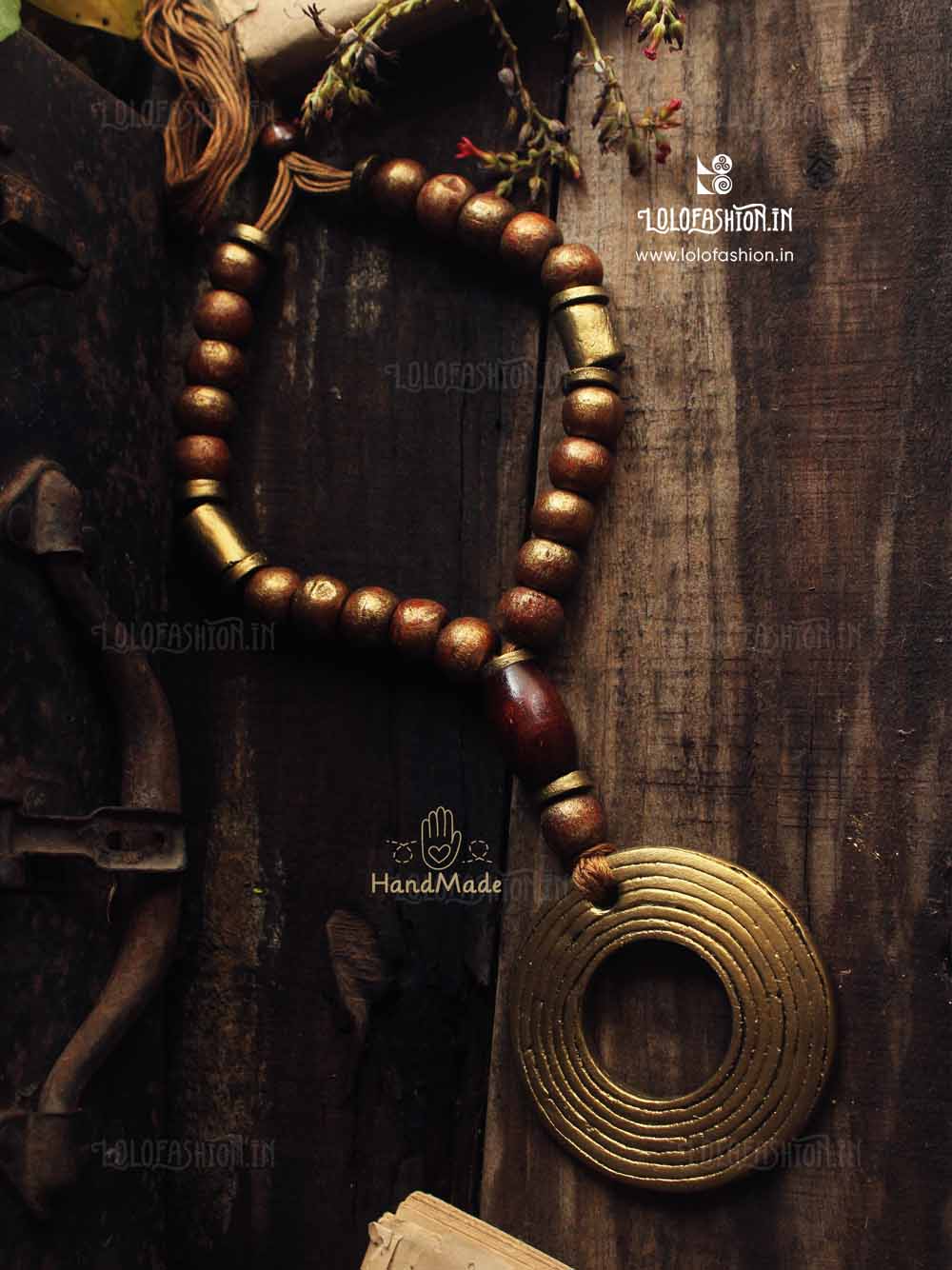 materials: synthetic clay, anchor thread tassel, wooden beads # product colour: antique gold # tassel colour: brown