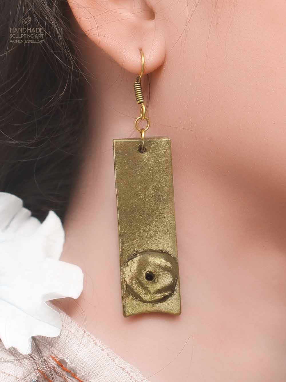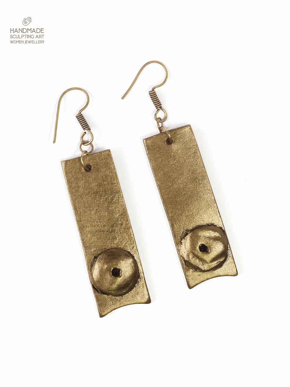 handmade sculpting art women jewellery. • materials: synthetic clay. • product colour: antique gold (acrylic) • measurements: length approximate 2.3 inches (without hooks) • product weight: approximate 16 grams.