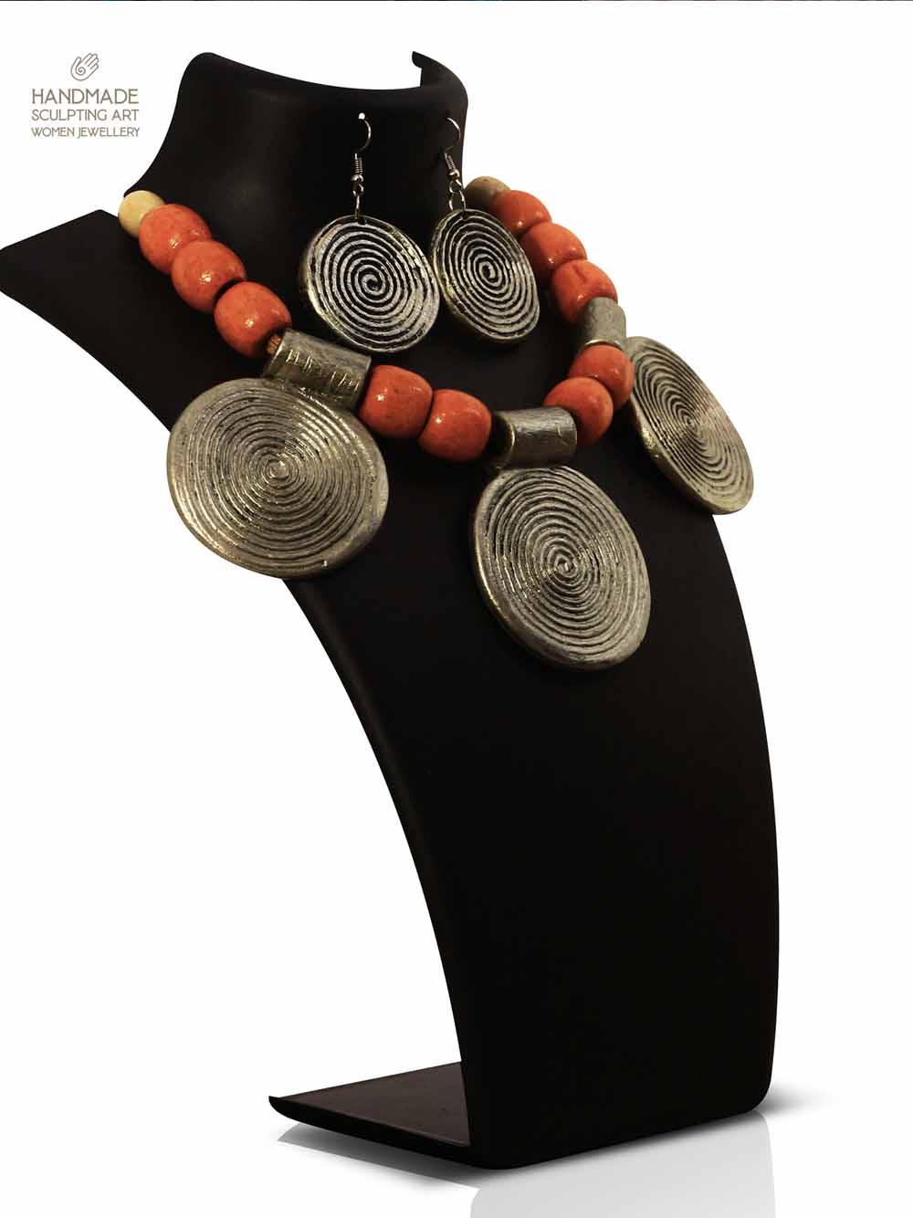 materials: synthetic clay, anchor thread tassel, wooden beads # product colour: silver # tassel colour: dark yellown # product weight: approximate 100 grams.