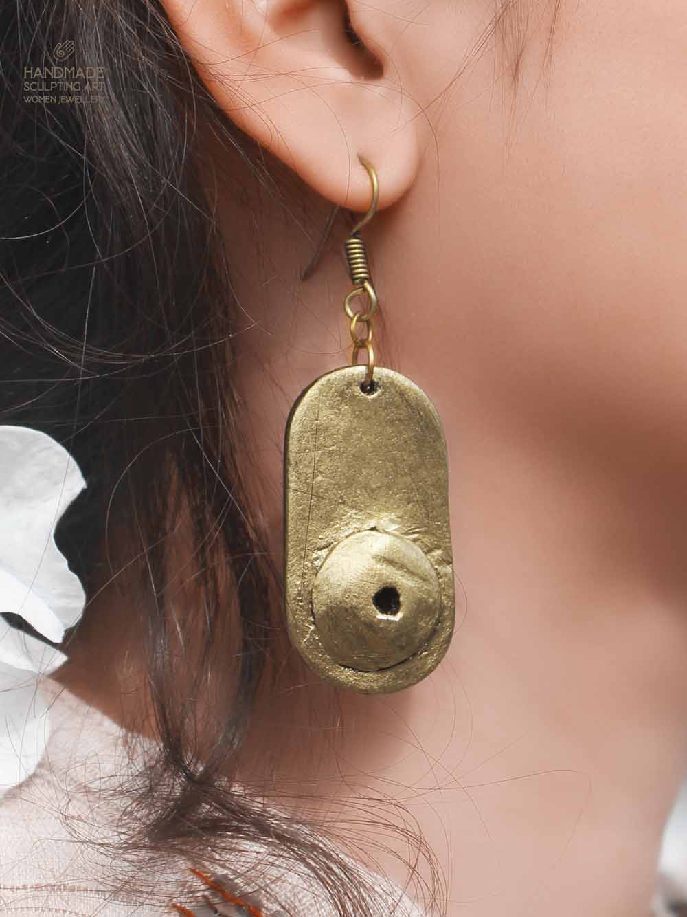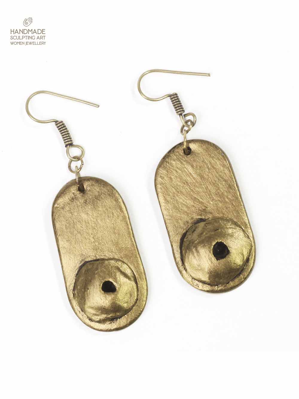 • materials: synthetic clay. • product colour: antique gold (acrylic) • measurements: length approximate 1.75 inches (without hooks) • product weight: approximate 13 grams.