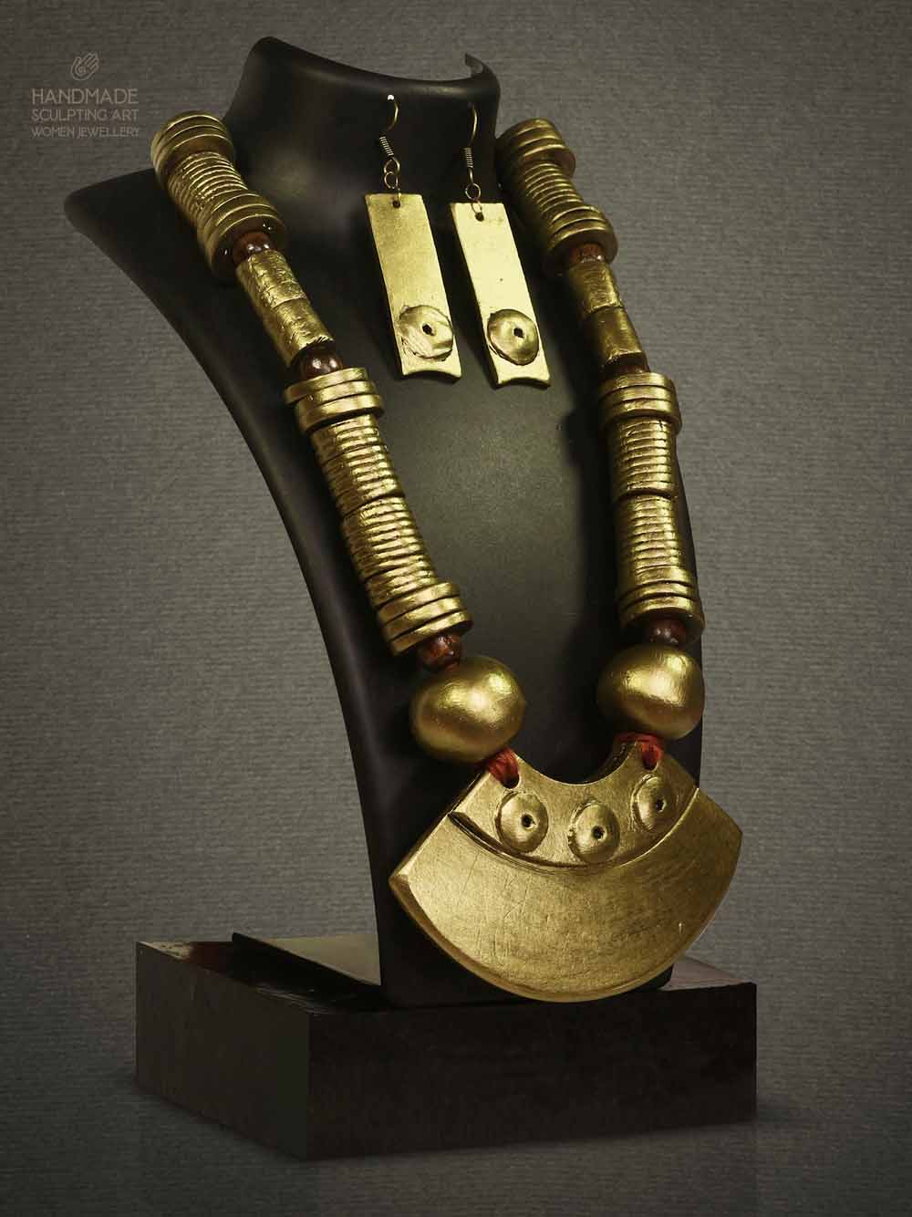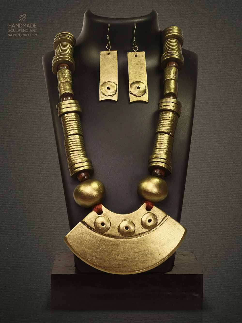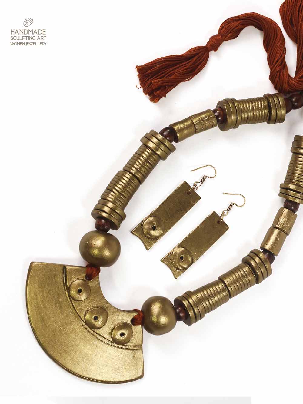 materials: synthetic clay, anchor thread tassel, wooden beads # product colour: antique gold # tassel colour: dark brown # measurements: length approximate 13 inches (without tassel) # product weight: approximate 250 grams.