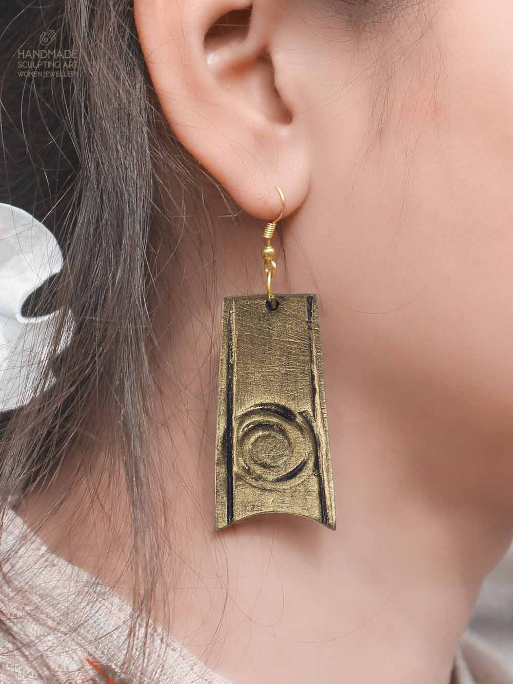 • materials: synthetic clay. • product colour: antique gold (acrylic) • measurements: length approximate 1.9 inches (without hooks) • product weight: approximate 10 grams.