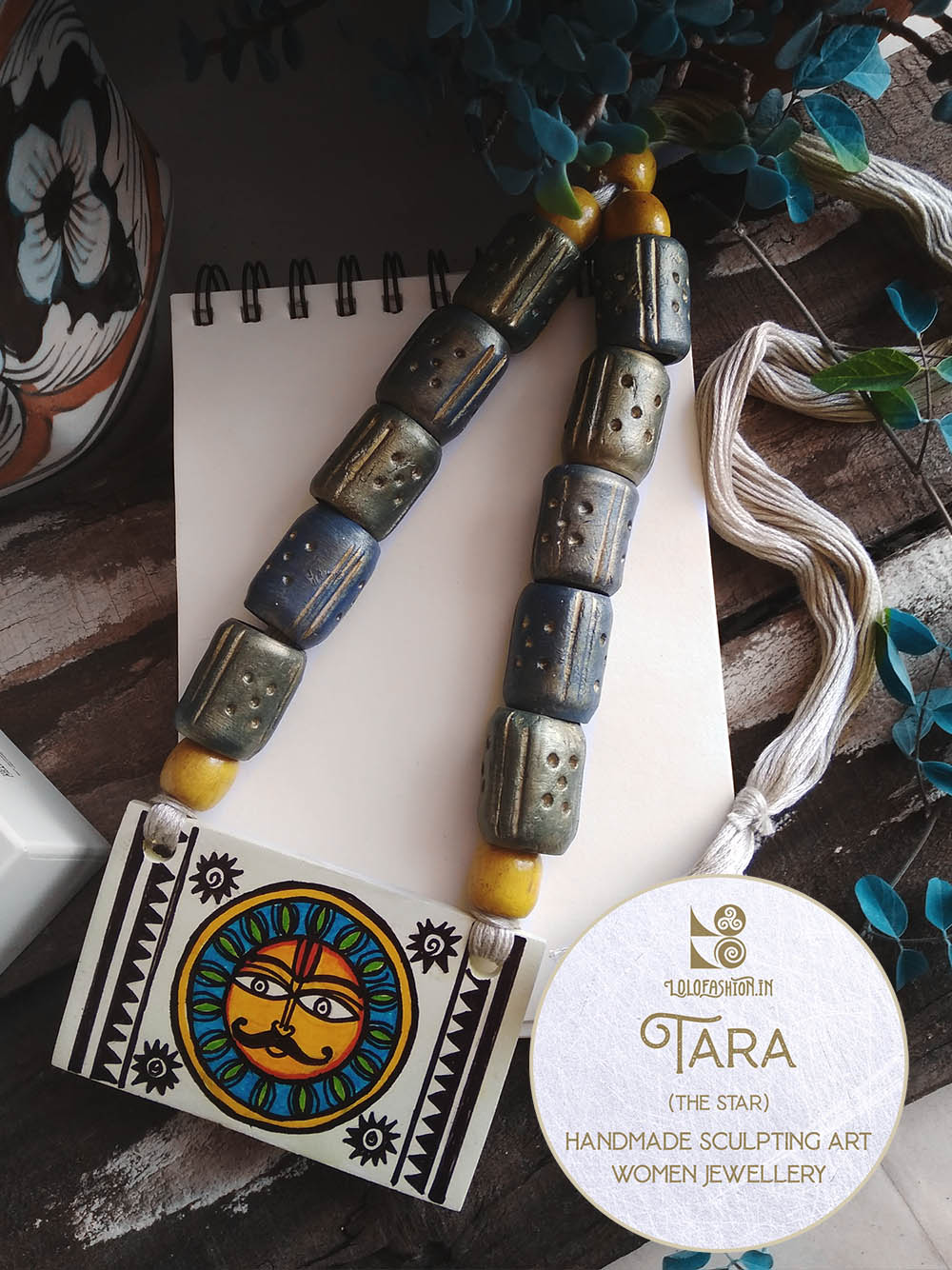 materials: synthetic clay, anchor thread tassel, wooden beads # tassel colour: off-white