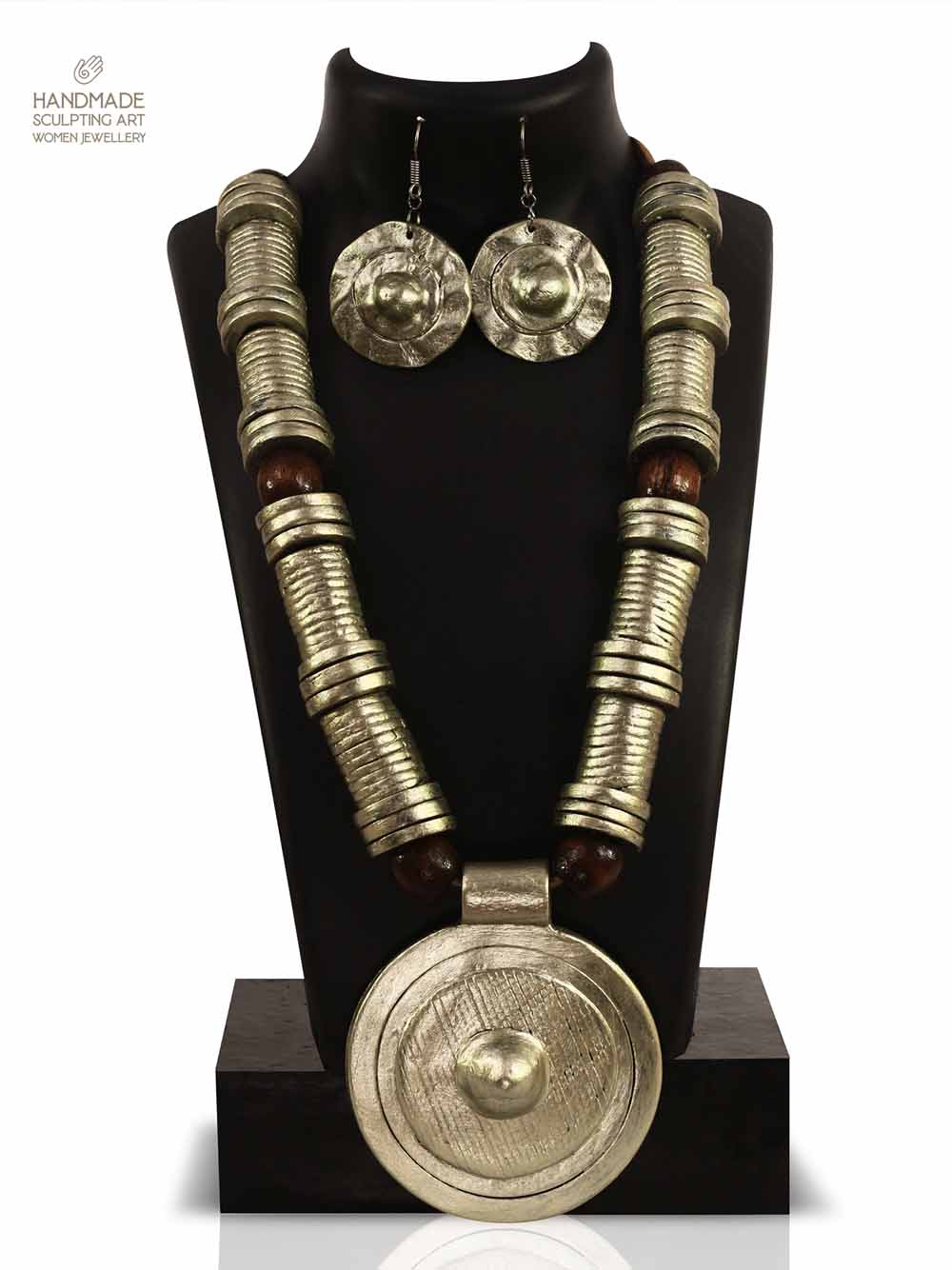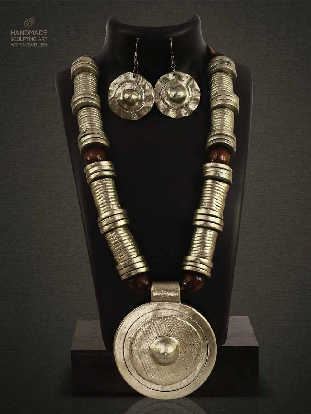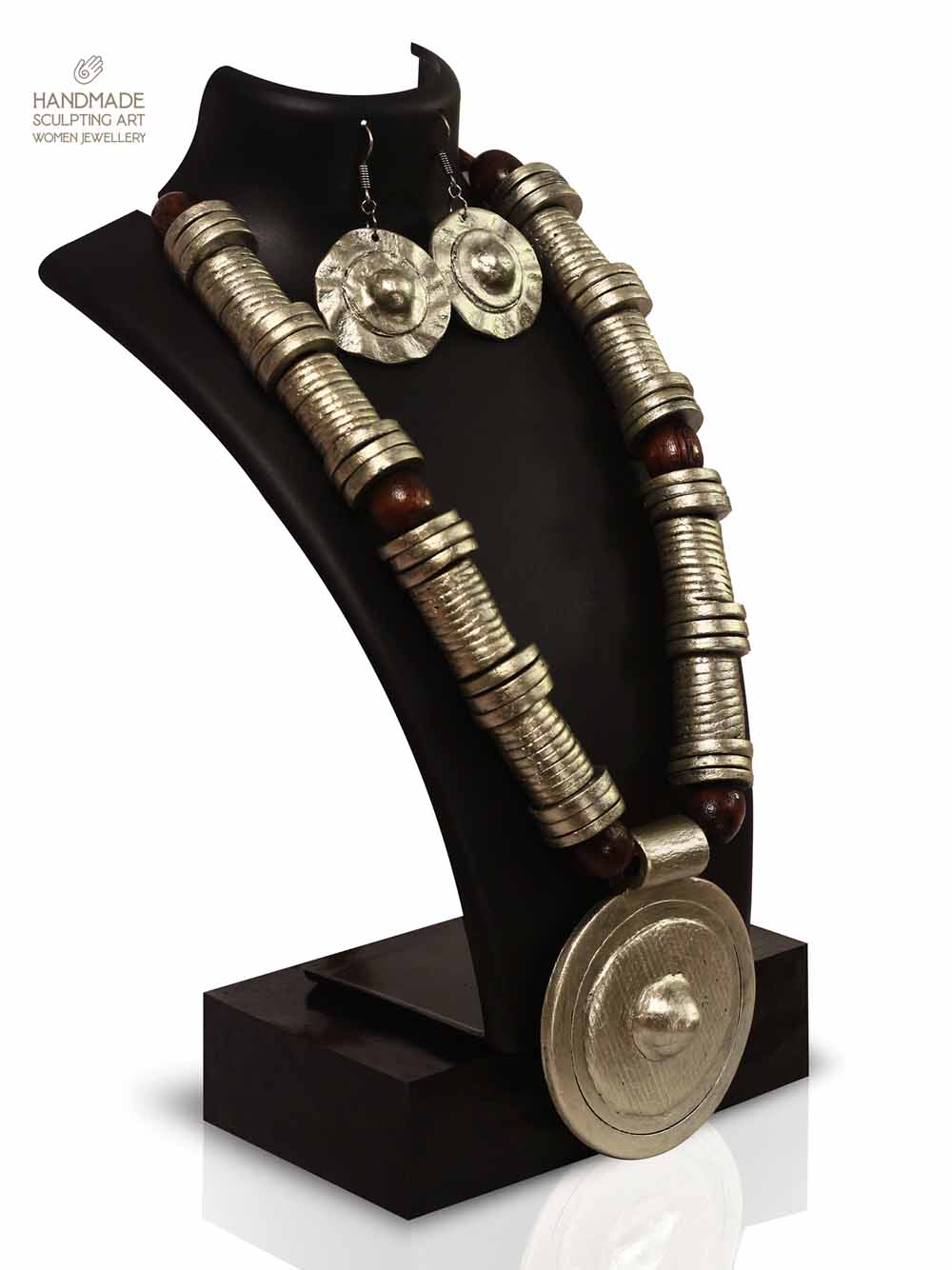 materials: synthetic clay, anchor thread tassel, wooden beads # product colour: silver # tassel colour: sandstone # measurements: length approximate 12 inches (without tassel) # product weight: approximate 250 grams.