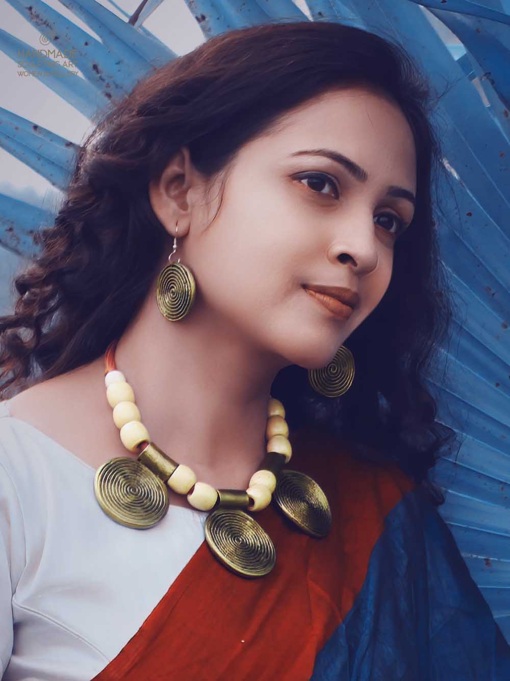 one necklace and a pair of ear pendant.