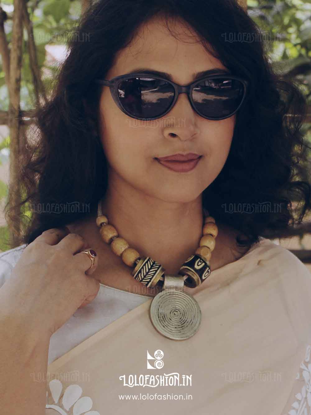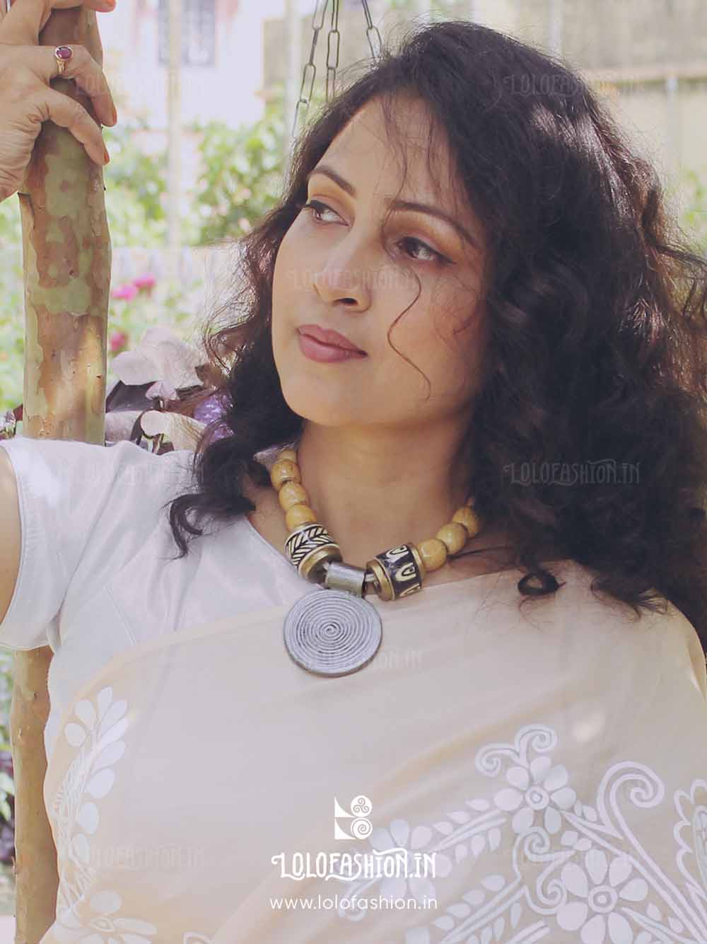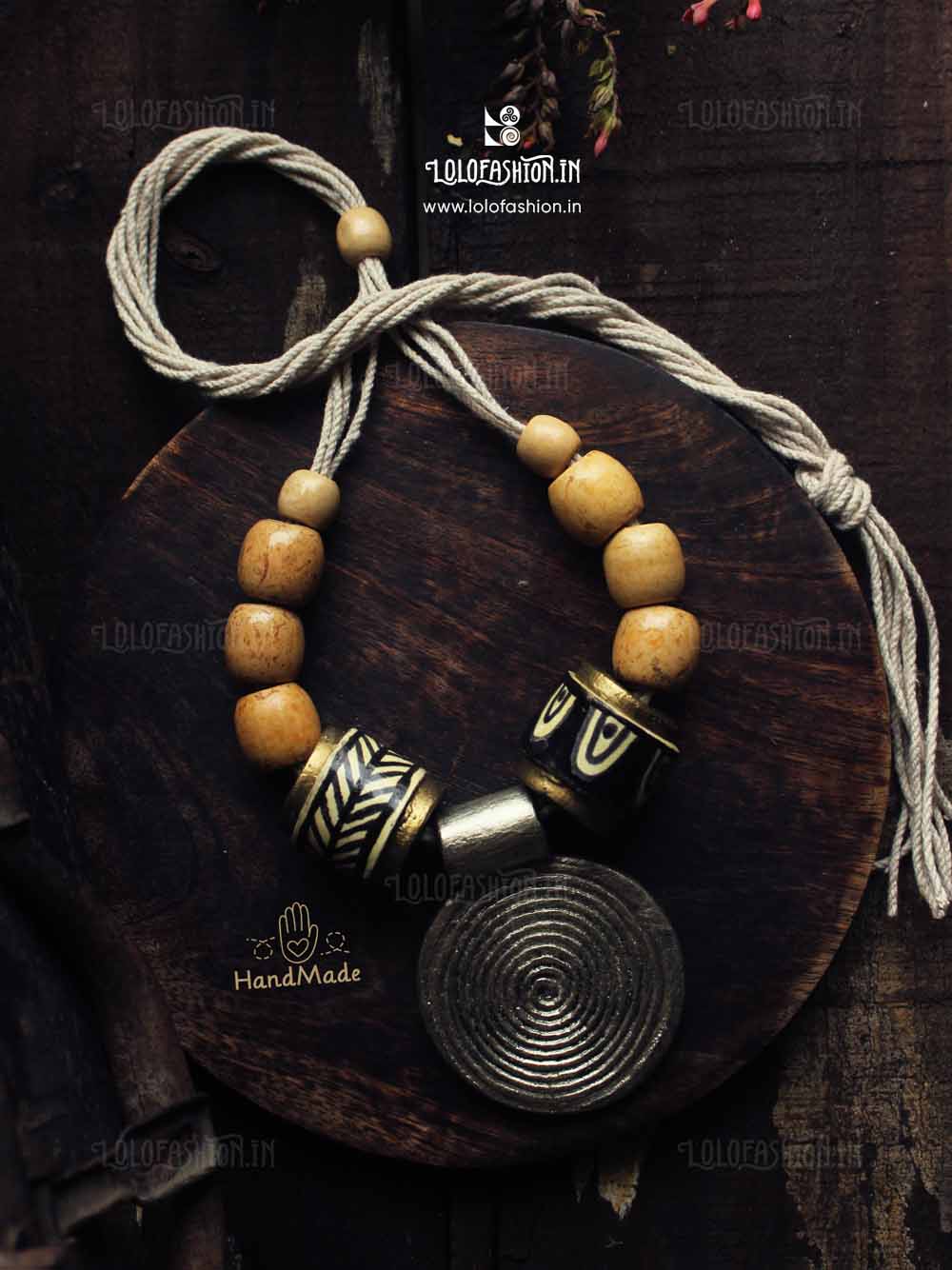 materials: synthetic clay, cotton tassel, wooden beads # product colour: antique silver # tassel colour: off white # product weight: approximate 70 grams.